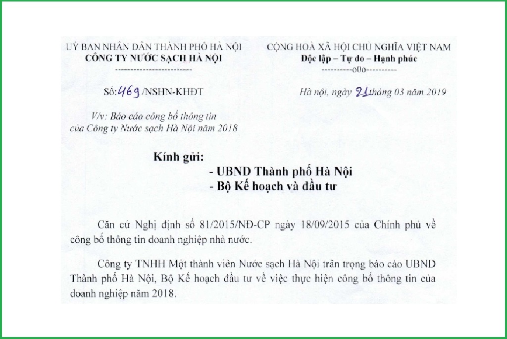 Báo cáo công bố thông tin của Công ty Nước sạch Hà Nội năm 2018