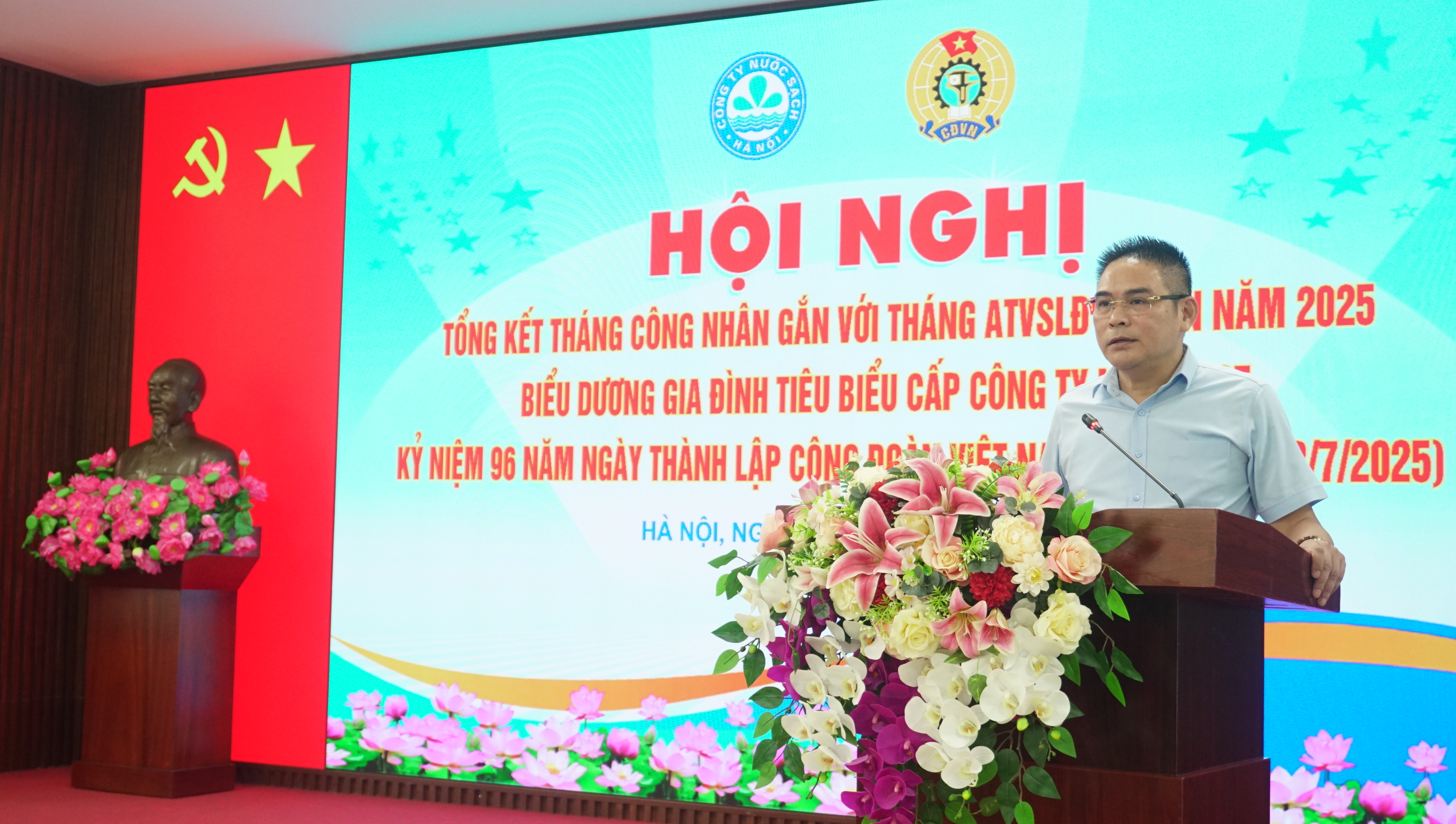 Sáng ngày 17/7/2025, trong không khí trang trọng và đầy ý nghĩa, Công đoàn Công ty Nước sạch Hà Nội đã tổ chức Lễ kỷ niệm 96 năm ngày thành lập Công đoàn Việt Nam (28/07/1929 – 28/07/2025) và Hội nghị tổng kết Tháng Công nhân gắn với Tháng ATVSLĐ – PCCN năm 2025; Biểu dương gia đình tiêu biểu cấp Công ty năm 2025. Đây là dịp để ôn lại truyền thống vẻ vang của Tổ chức Công đoàn, đồng thời ghi nhận những đóng góp to lớn của tập thể cán bộ, đoàn viên công đoàn trong suốt chặng đường phát triển.