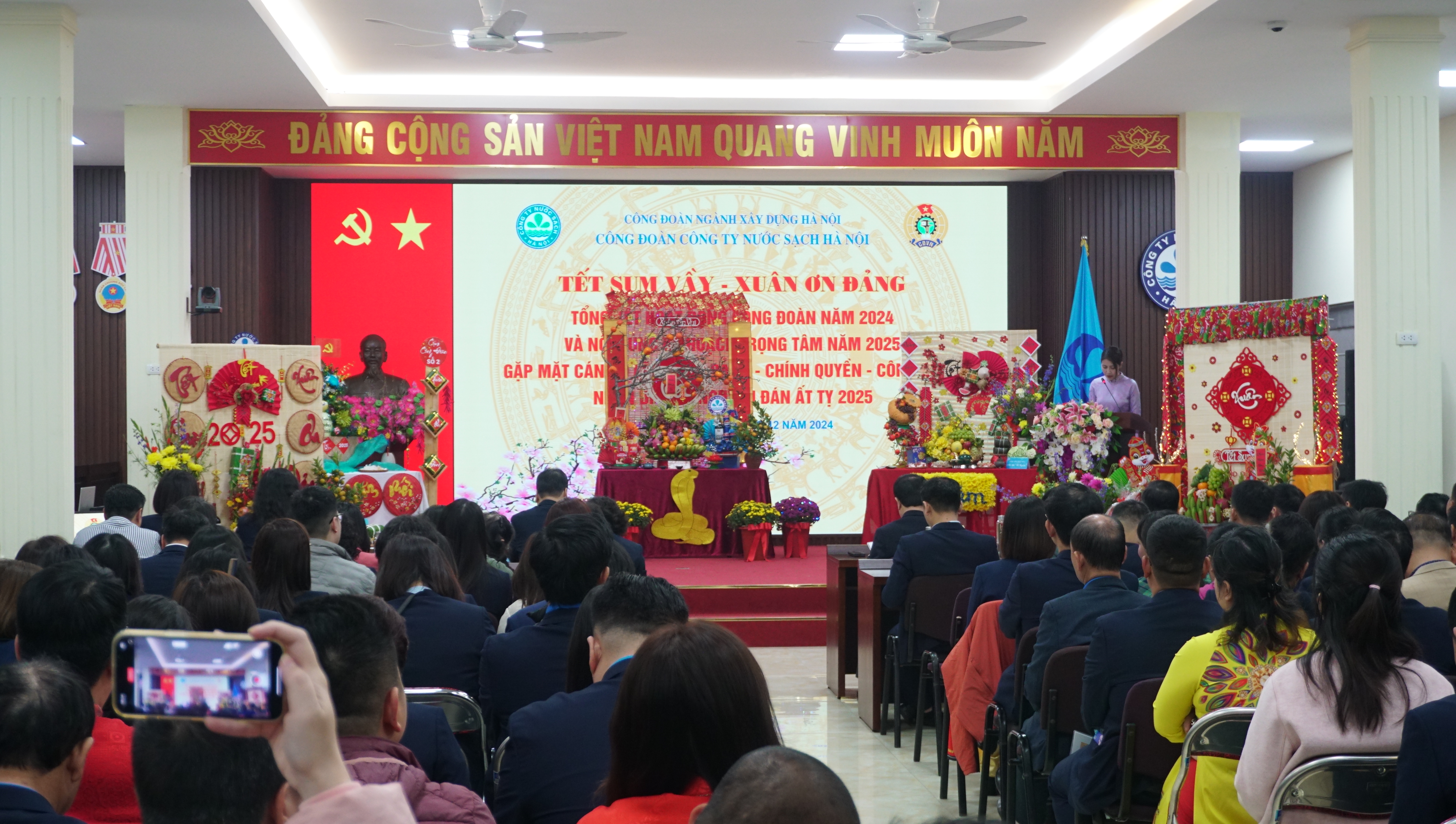 Sáng ngày 30/12/2024, được sự đồng ý và tạo điều kiện của Ban lãnh đạo Công ty, Công đoàn Công ty Nước sạch Hà Nội đã tổ chức Chương trình “Tết sum vầy – Xuân ơn Đảng” – Hội nghị Tổng kết hoạt động Công đoàn năm 2024 và nội dung phương hướng hoạt động trọng tâm năm 2025.