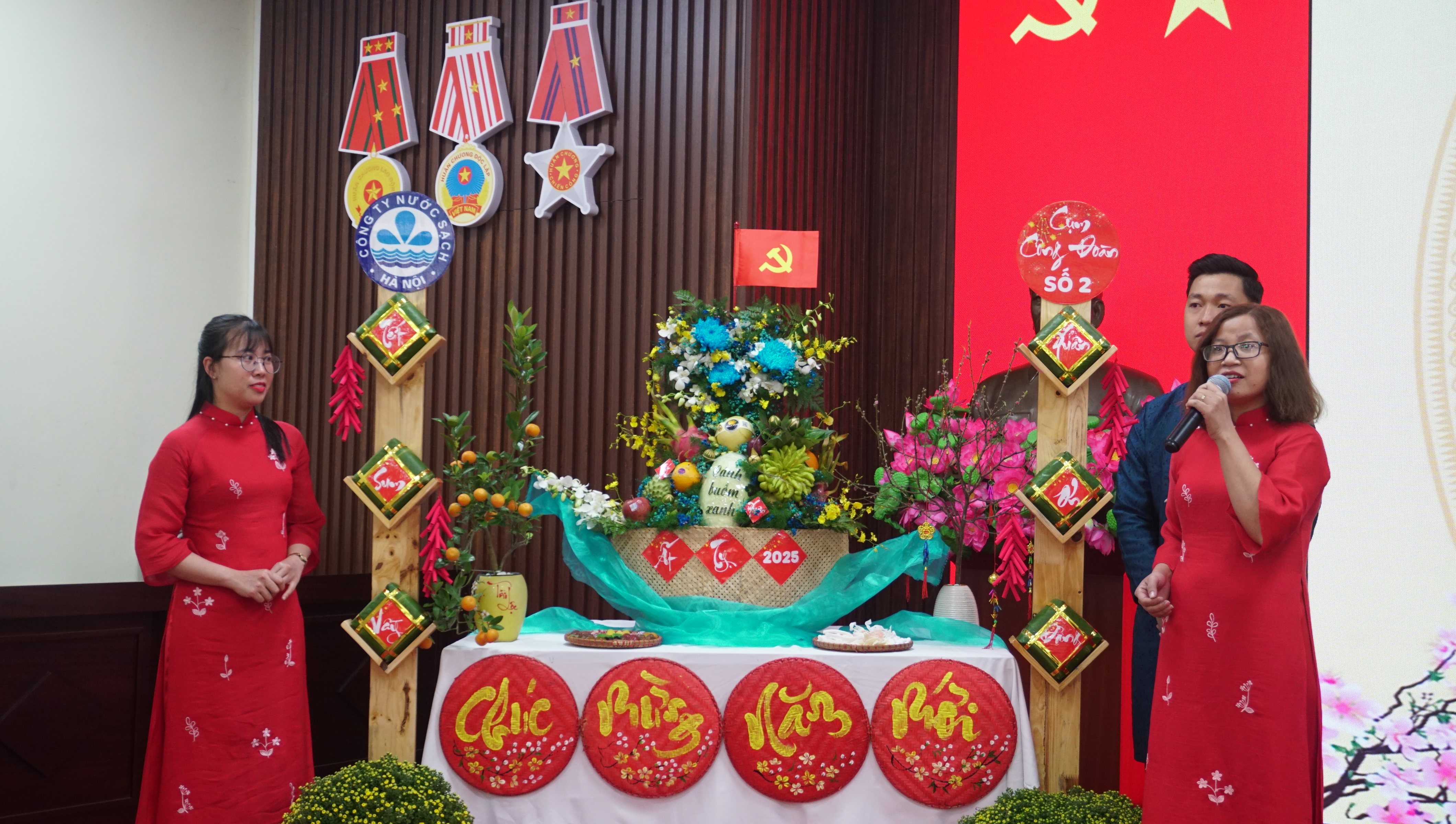 Tại Hội nghị, Công đoàn Công ty Nước sạch Hà Nội đã tổ chức chương trình Tết sum vầy – Xuân ơn Đảng thông qua phần thi: “Trang trí mâm ngũ quả, sản phẩm Tết cổ truyền dân tộc” với sự tham gia của 5 đội thi đại diện cho 5 cụm Công đoàn. Kết quả: Giải Ba đã thuộc về Cụm Công đoàn số 1 và số 2; Giải Nhì thuộc về Cụm Công đoàn số 4 ; Giải Nhất thuộc về Cụm Công đoàn số 5; Và Giải Đặc biệt của Hội thi thuộc về Cụm Công đoàn số 3.