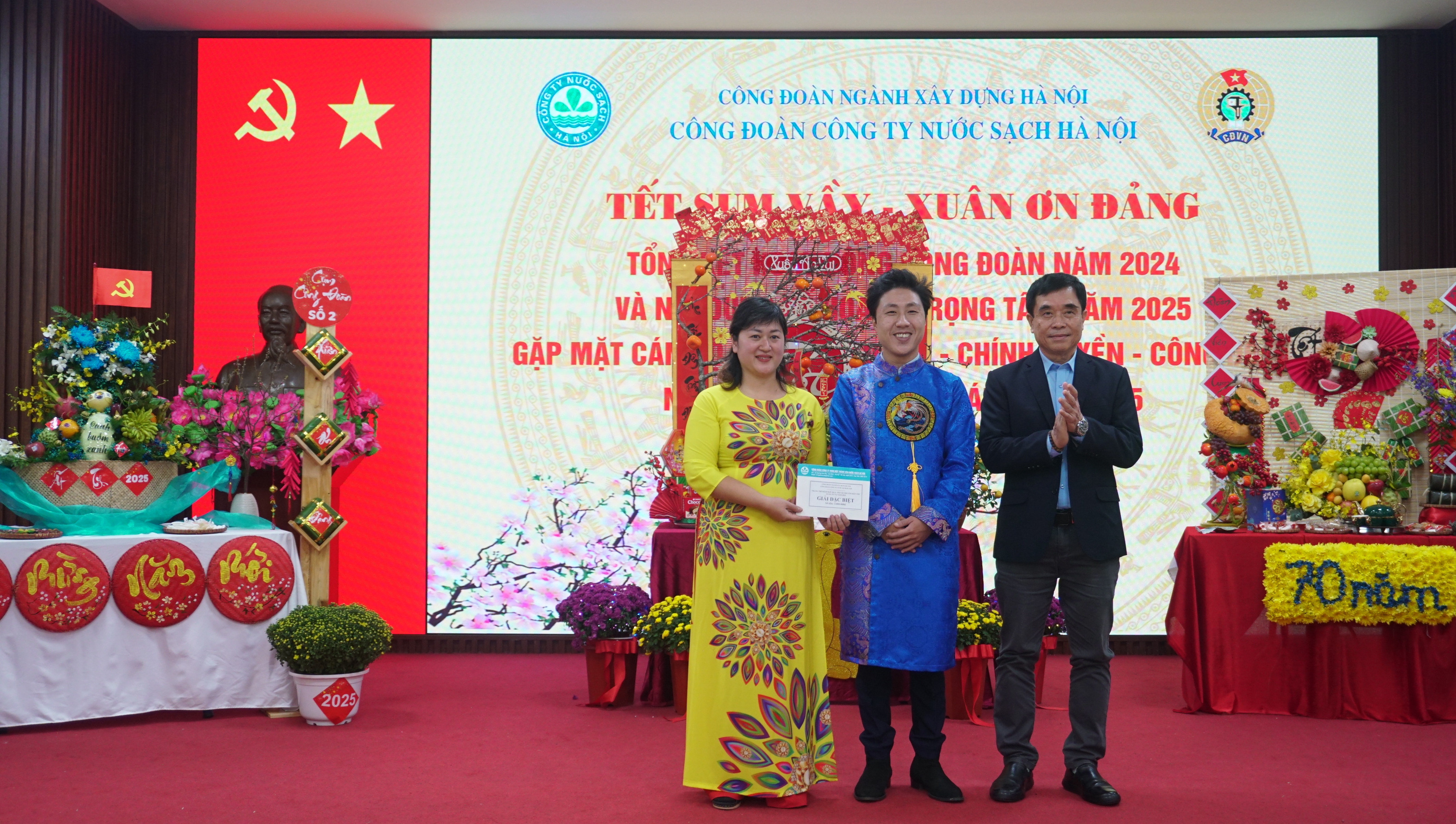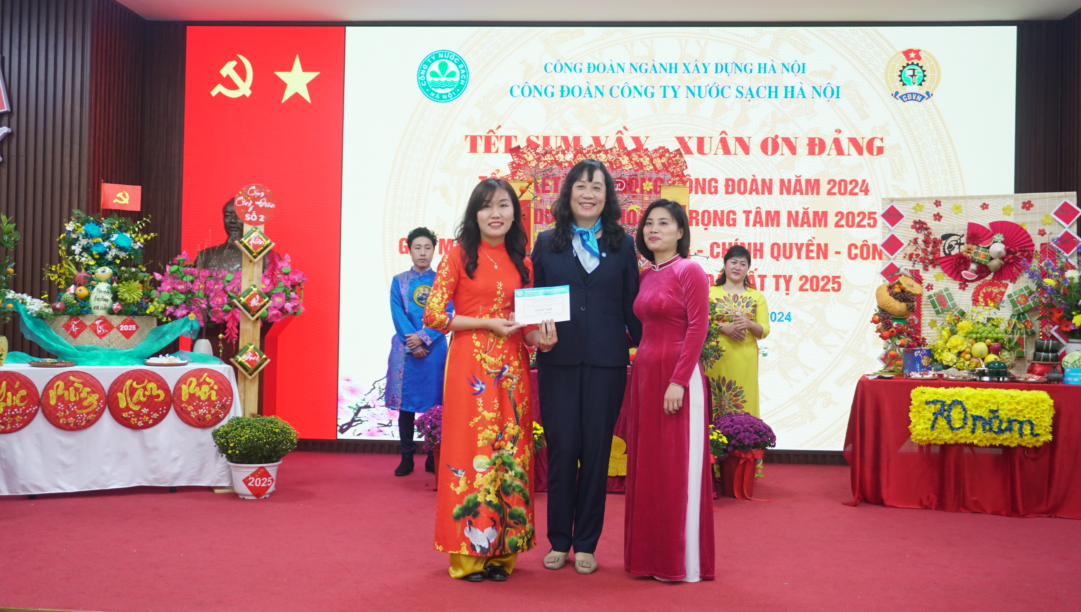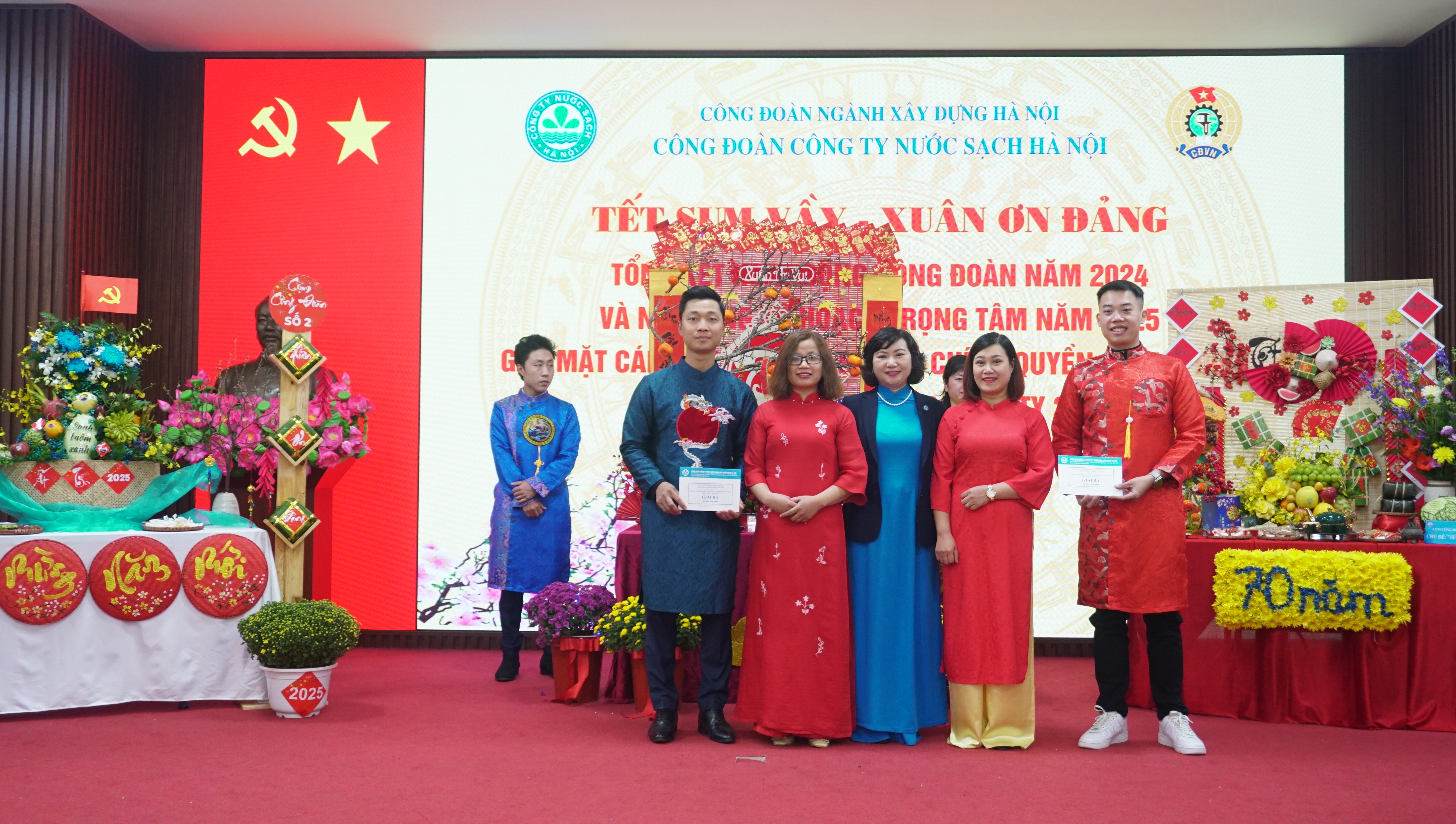 Với những dấu ấn hoạt động trong năm qua, Tổng Liên đoàn Lao động Việt Nam đã trao bằng khen “Công đoàn cơ sở vững mạnh phong trào thi đua xuất sắc năm 2024” cho Công đoàn Công ty Nước sạch Hà Nội; Khen thưởng danh hiệu: “Đã có thành tích xuất sắc trong phong trào thi đua và hoạt động Công đoàn năm 2024” cho 02 cá nhân: ông Trương Tiến Hưng, UV Ban thường vụ Đảng ủy, Phó Tổng giám đốc, Chủ tịch Công đoàn Công ty và bà Trần Thu Trang, UV Ban thường vụ Công đoàn, Bí thư Đoàn thanh niên Công ty.