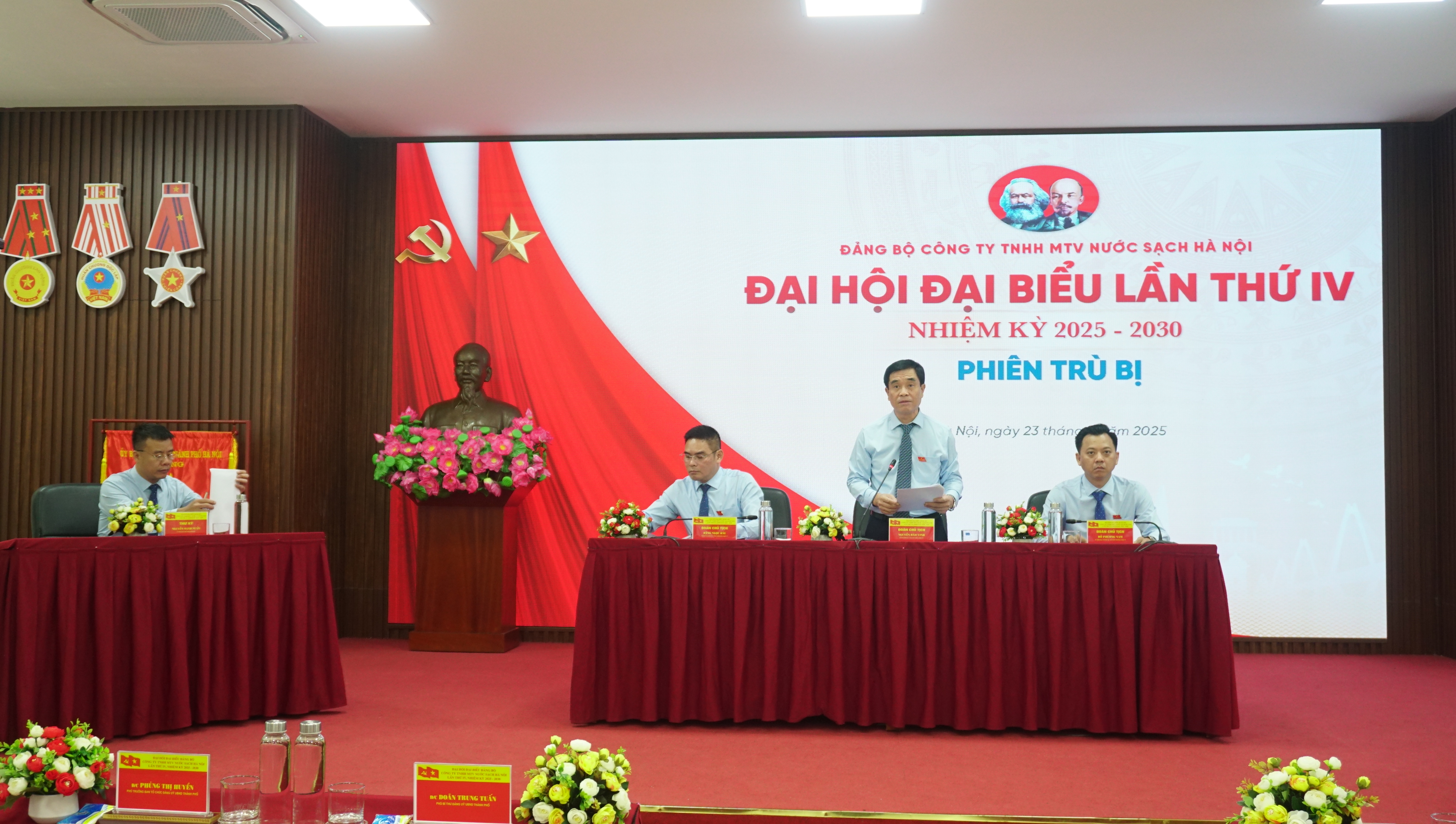 Sau hai ngày làm việc (23/6/2025 và 24/6/2025) nghiêm túc, khẩn trương và đúng quy định, Đảng bộ Công ty Nước sạch Hà Nội đã tổ chức thành công hai phiên họp Đại hội đại biểu Đảng bộ Công ty Nước sạch Hà Nội lần thứ IV nhiệm kỳ 2025 – 2030 hướng tới mục tiêu “Đảm bảo an toàn, an ninh cấp nước, phát triển hệ thống cấp nước bền vững”. Đại hội đã cùng tổng kết, thảo luận các Báo cáo chính trị của Ban chấp hành Đảng bộ Công ty khóa III; Báo cáo kiểm điểm của Ban chấp hành Đảng bộ Công ty khóa III; Thảo luận, đóng góp ý kiến vào văn kiện Đại hội đại biểu toàn quốc lần thứ XIV của Trung Ương và Đại hội Đảng bộ UBND Thành phố lần thứ I nhiệm kỳ 2025 – 2030; Bầu Ban chấp hành Đảng bộ Công ty Nước sạch Hà Nội khóa IV và bầu đoàn đại biểu đi dự Đại hội Đảng bộ UBND Thành phố Hà Nội lần thứ I.