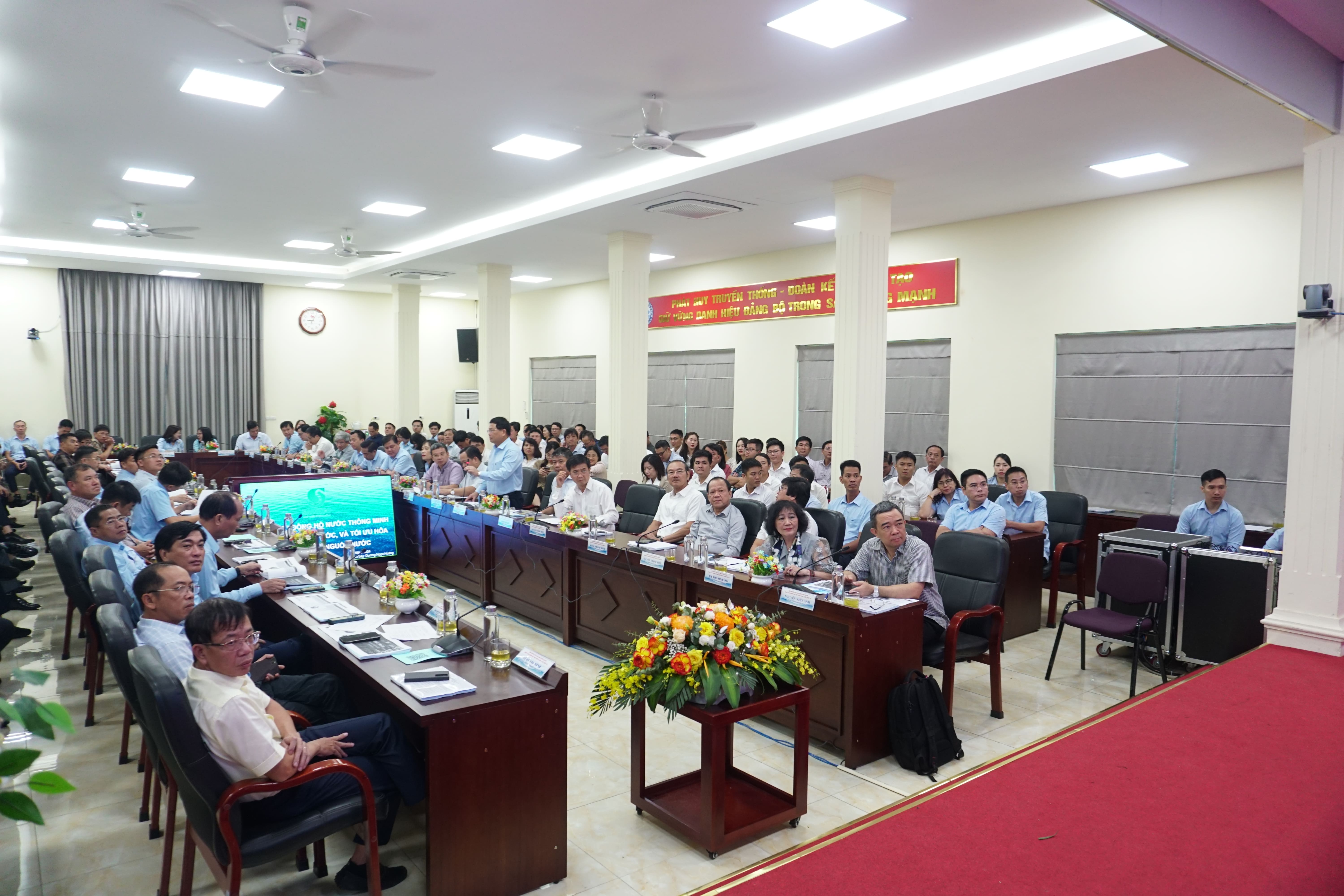 Hội thảo đã lắng nghe 08 bài tham luận của các Công ty cấp nước, đều là những tài liệu quý báu để cùng chia sẻ kinh nghiệm, các giải pháp ứng dụng trong thực tiễn của từng đơn vị, hướng tới mục tiêu đưa ra các giải pháp lâu dài để đảm bảo cấp nước an toàn đô thị và ứng phó với rủi do trong ứng dụng công nghệ số. Các tham luận gồm: “Thực trạng và giải pháp quản lý cấp nước khu chung cư” của Công ty Nước sạch Hà Nội; Tham luận “Ứng dụng đồng hồ thông minh dự báo nhu cầu nước và tối ưu hóa việc quản lý nguồn nước” của Tổng Công ty cấp nước Sài Gòn; Tham luận “Các rủi ro đến từ hạ tầng công nghệ thông tin” của Công ty Công ty CP cấp nước Bà Rịa – Vũng Tàu; Tham luận “Quản lý rủi ro trong hệ thống cấp nước và giải pháp đảm bảo cấp nước an toàn tại Huewaco” của Công ty CP cấp nước Thừa Thiên Huế; Tham luận “Dự báo nguy cơ rủi ro trong ứng dụng công nghệ thông tin” của Tổng Công ty nước và môi trường Bình Dương; Tham luận “Dự báo nguy cơ rủi ro trong quản lý cấp nước tại Dawaco” của Công ty CP cấp nước Đà Nẵng; Tham luận “Giải pháp đảm bảo an ninh nguồn nước, an ninh mạng” tại Công ty CP nước sạch Quảng Ninh; Tham luận “Ưu nhược điểm và kinh nghiệm trong sử dụng công nghệ RO để xử lý nước biển tại nhà máy Cái Giá – đảo Cát Bà” của Công ty CP cấp nước Hải Phòng.