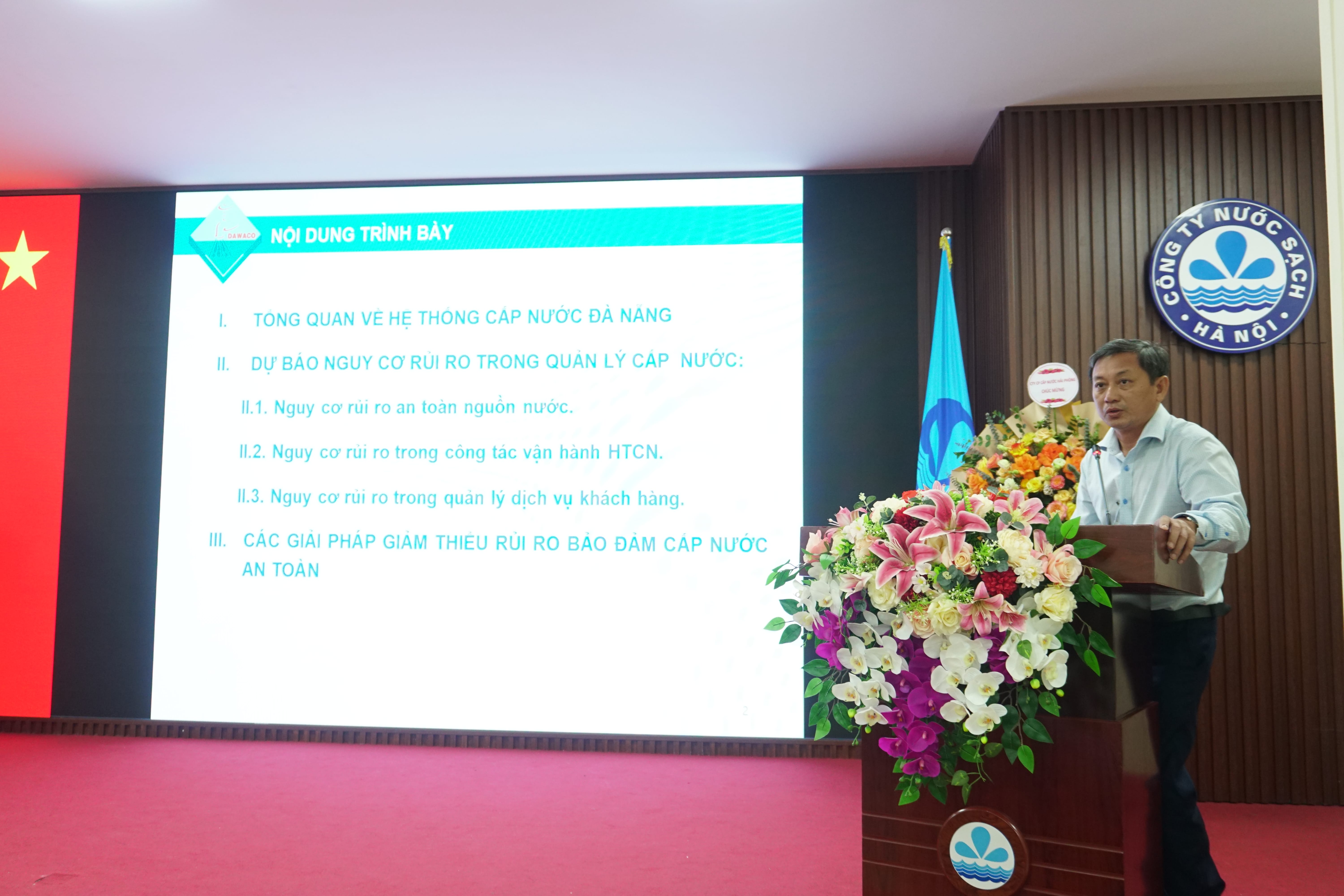 Phát biểu khai mạc Hội nghị, ông Trần Quốc Hùng, Tổng Giám đốc Công ty Nước sạch Hà Nội nhấn mạnh: “Chủ đề của Hội thảo: “Quản lý rủi ro trong cấp nước đô thị và ứng dụng công nghệ số” là lĩnh vực thực tiễn diễn ra phức tạp trong xu thế phát triển và hội nhập của cả xã hội nói chung và ngành nước nói riêng. Các thách thức đang đặt ra đối với ngành nước hiện nay bao gồm: Vấn đề suy thoái, cạn kiệt ô nhiễm nguồn nước, công tác chống thất thoát thất thu, nâng cao dịch vụ cấp nước, quản lý cấp nước cho các loại hình chung cư tại đô thị; Các nguy cơ lạc hậu, xâm nhập, bảo mật, vận hành quản lý dữ liệu, phát triển nguồn nhân lực trong công tác ứng dụng công nghệ số của các Công ty cấp nước”.