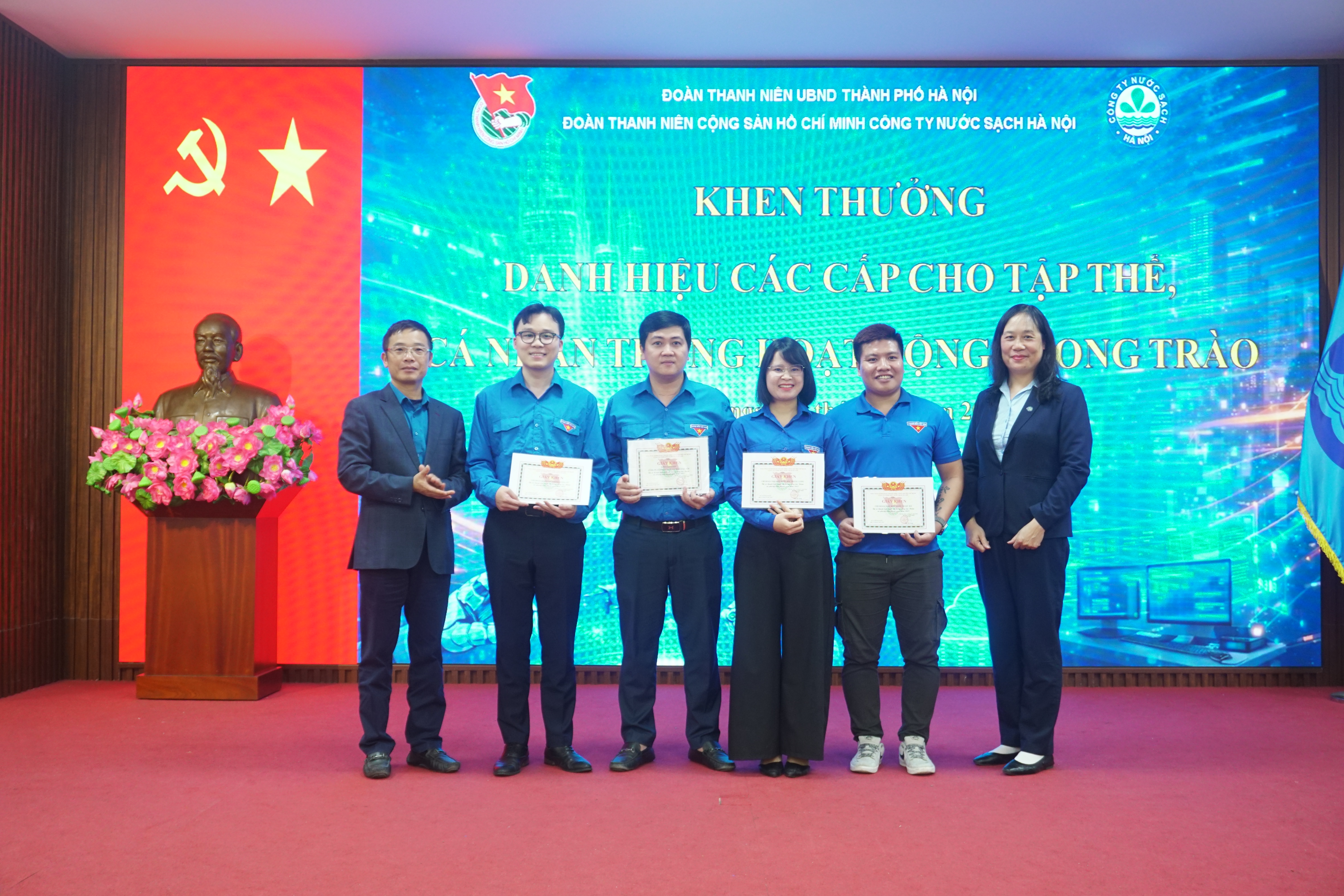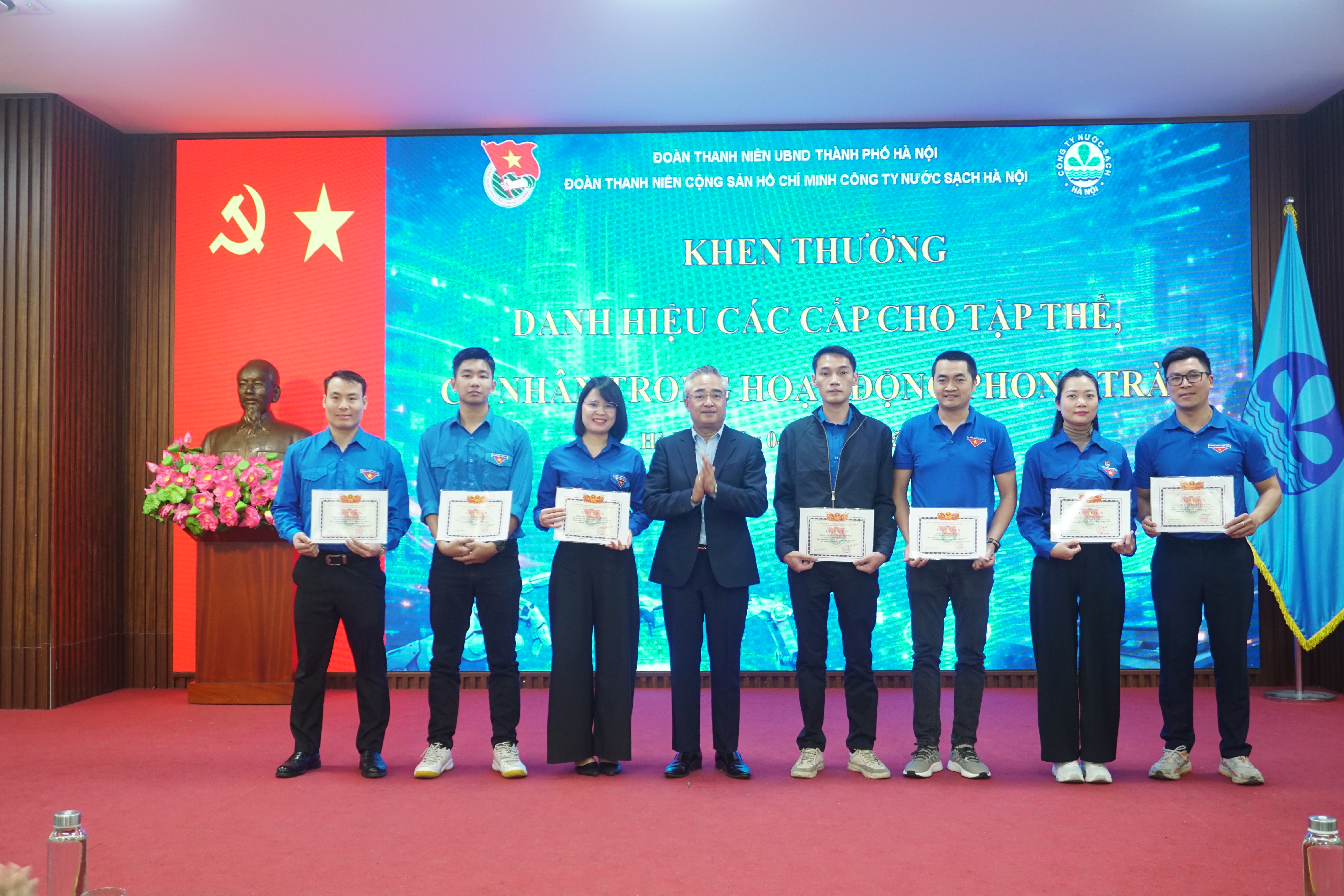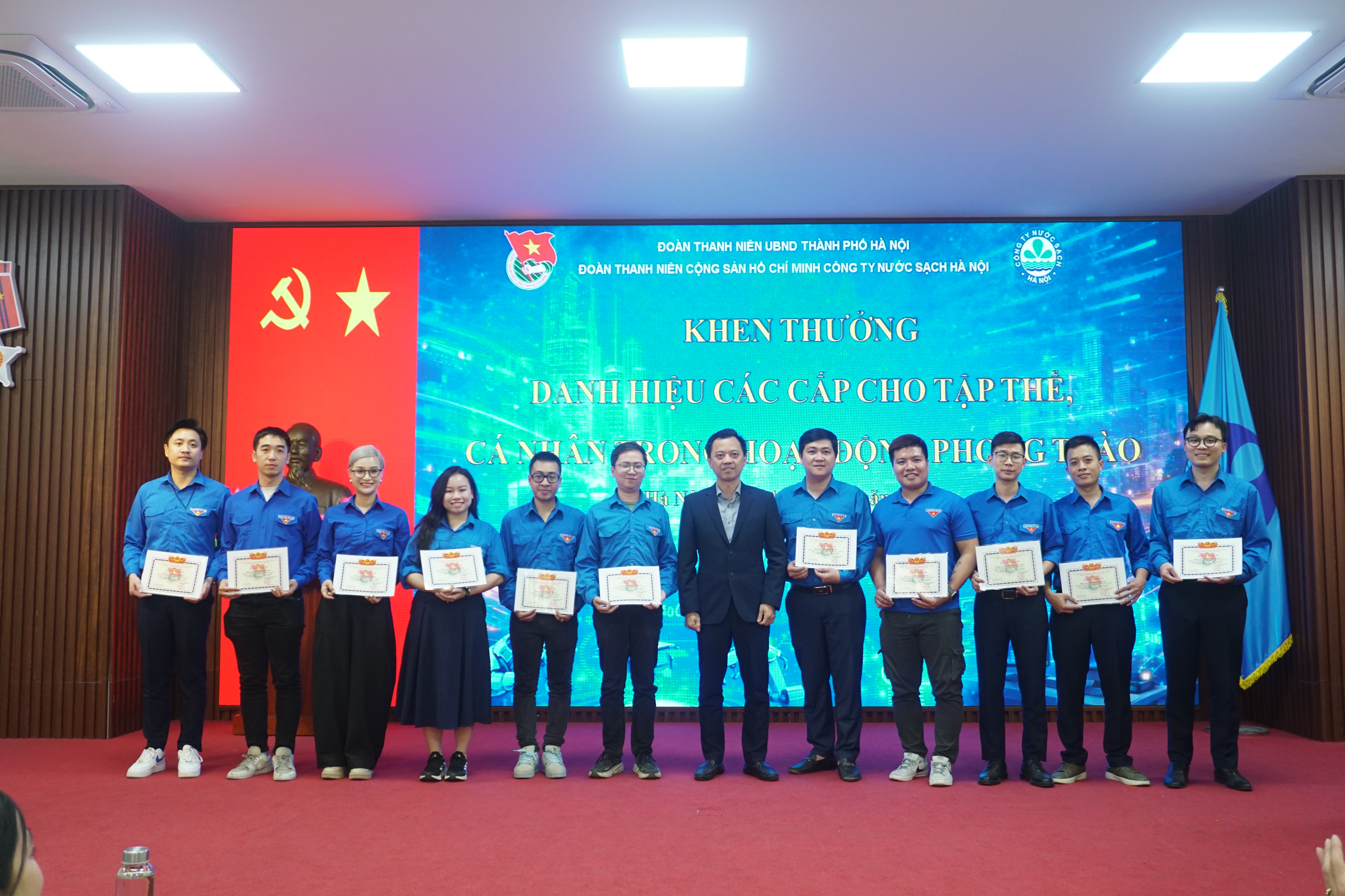 Ghi nhận những thành tích đã đạt được trong hoạt động phong trào của Đoàn Thanh niên Công ty Nước sạch Hà Nội trong năm vừa qua, Đoàn Thanh niên CS HCM UBND Thành phố Hà Nội đã tặng Giấy khen “Hoàn thành xuất sắc nhiệm vụ trong công tác Đoàn và phong trào Thanh niên năm 2025” cho Đoàn Thanh niên Công ty NSHN. Đ/c Trần Thu Trang, Bí thư Đoàn Thanh niên Công ty và đ/c Nguyễn Trường Giang, UV BTV Đoàn Thanh niên Công ty vinh dự được tặng Giấy khen “Hoàn thành xuât sắc công tác Đoàn năm 2025”.
