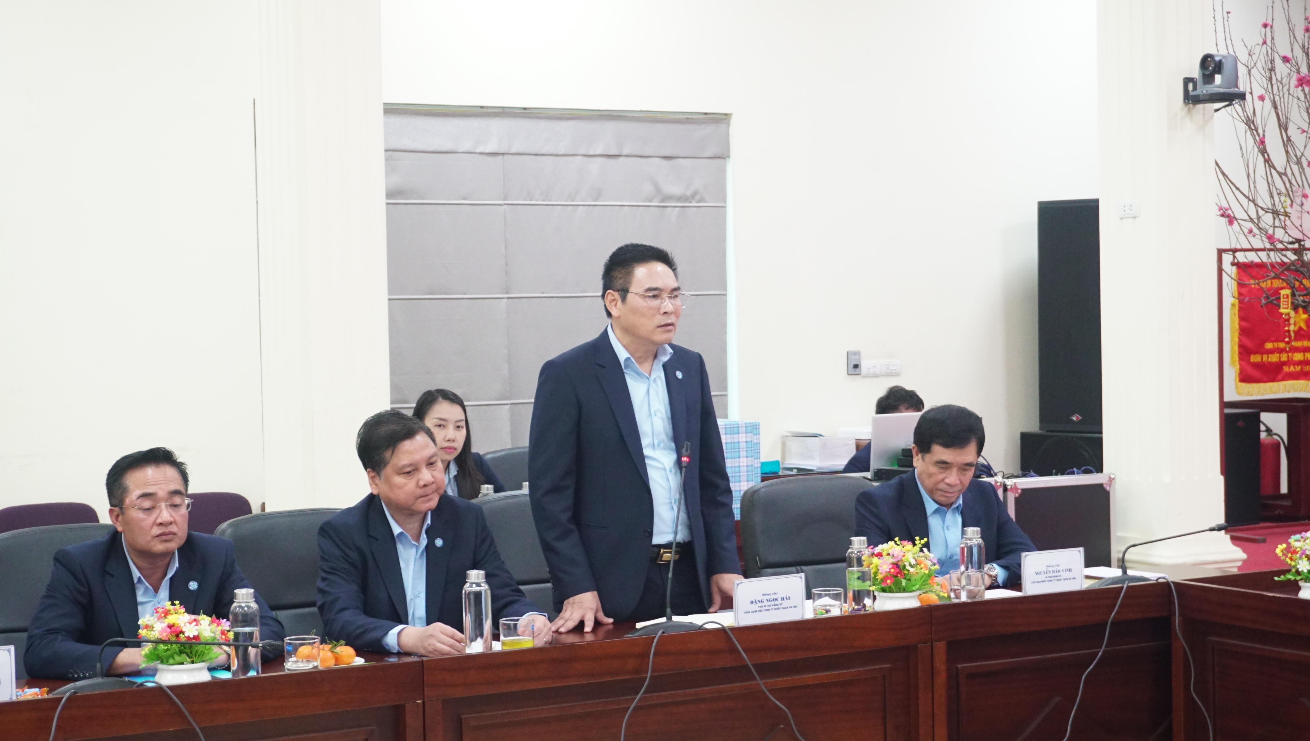 Tiếp thu các chỉ đạo của đồng chí Ủy viên Ban Thường vụ Thành ủy, đồng chí Đặng Ngọc Hải, Tổng Giám đốc khẳng định toàn thể CBCNV Công ty Nước sạch Hà Nội luôn đoàn kết phát huy sức mạnh tập thể để thực hiện hoàn thành thắng lợi các nhiệm vụ của Thành ủy, Hội đồng Nhân dân, Ủy Ban Nhân dân giao. Thường xuyên cập nhật tình hình kinh tế chính trị xã hội trên địa bàn Thành phố, chủ động nắm bắt tình hình, triển khai các nhiệm vụ chính trị cũng như các chỉ tiêu sản xuất kinh doanh được giao. Trong từng giai đoạn, nghiên cứu phát triển nguồn và mạng lưới cấp nước để mở rộng phạm vi cấp nước, tăng số hộ dân được sử dụng nước sạch trên địa bàn các huyện ngoại thành. Tập trung ứng trực bảo đảm công tác cấp nước Tết an toàn, liên tục và xử lý sự cố kịp thời trong mọi tình huống, không để khu vực nào mất nước, thiếu nước, giúp người dân Thủ đô an tâm đón Tết.