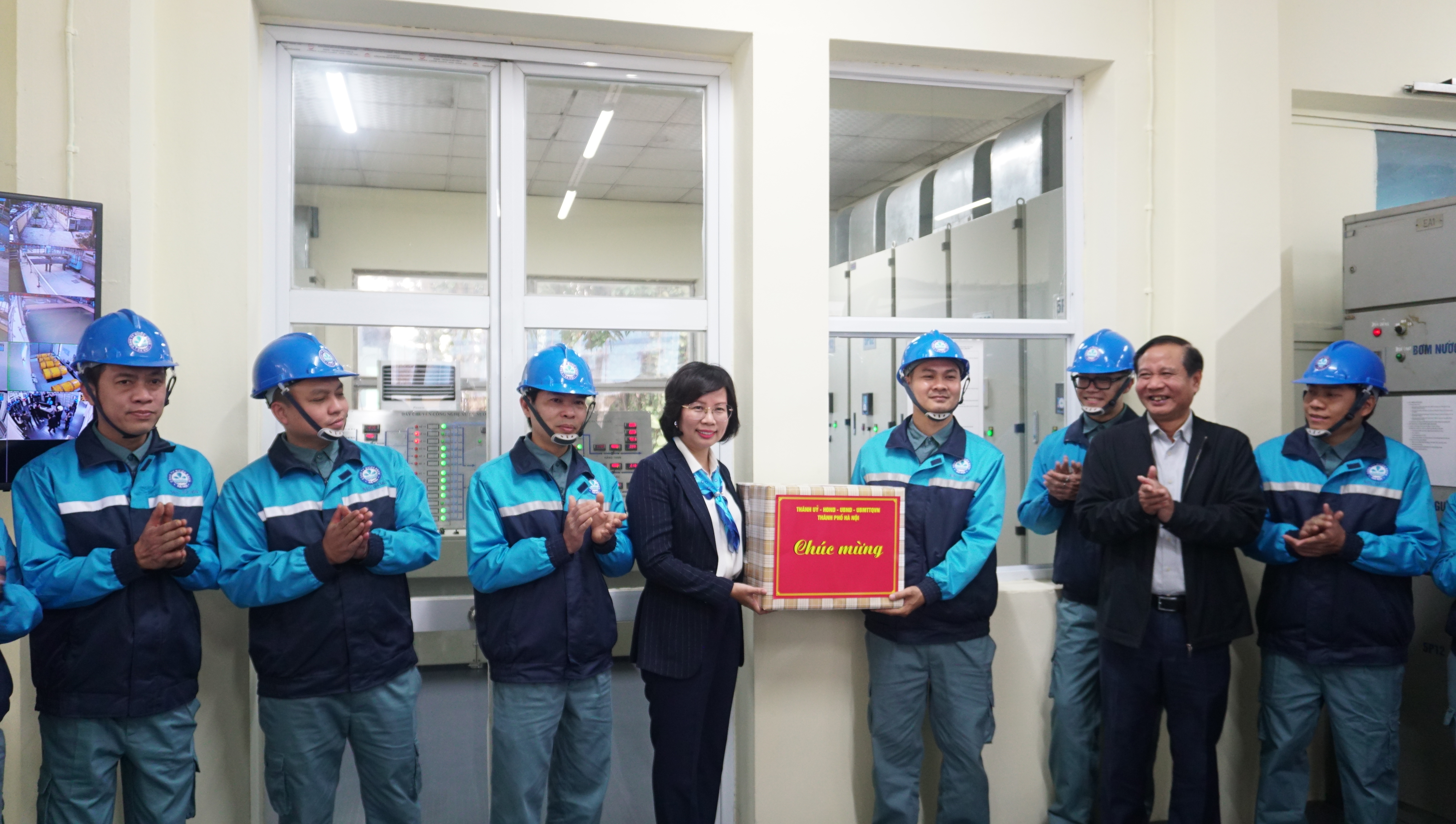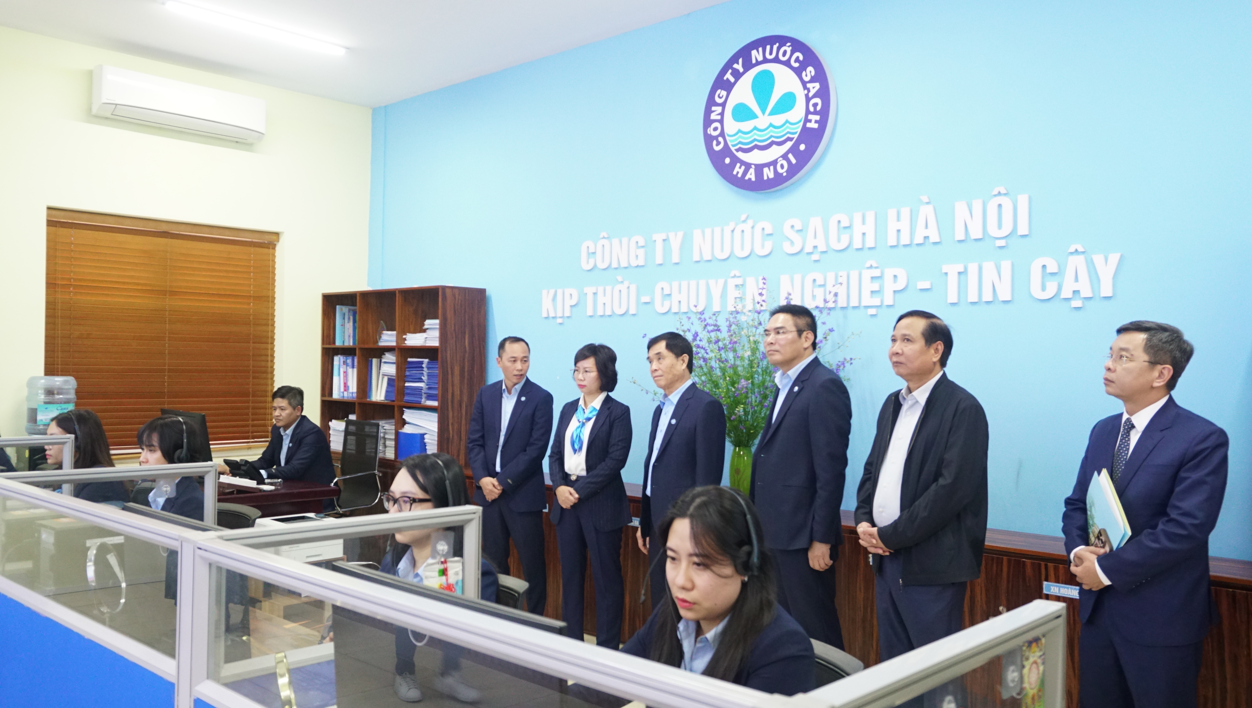 Cũng trong buổi làm việc, đoàn công tác do đồng chí Bùi Huyền Mai, Ủy viên Ban Thường vụ Thành ủy, Bí thư Quận ủy Thanh Xuân đã đến tham quan Tổng đài Chăm sóc khách hàng tại trụ sở Công ty Nước sạch Hà Nội và thăm hỏi động viên các công nhân của nhà máy nước Yên Phụ đang trực tiếp sản xuất cấp nước.