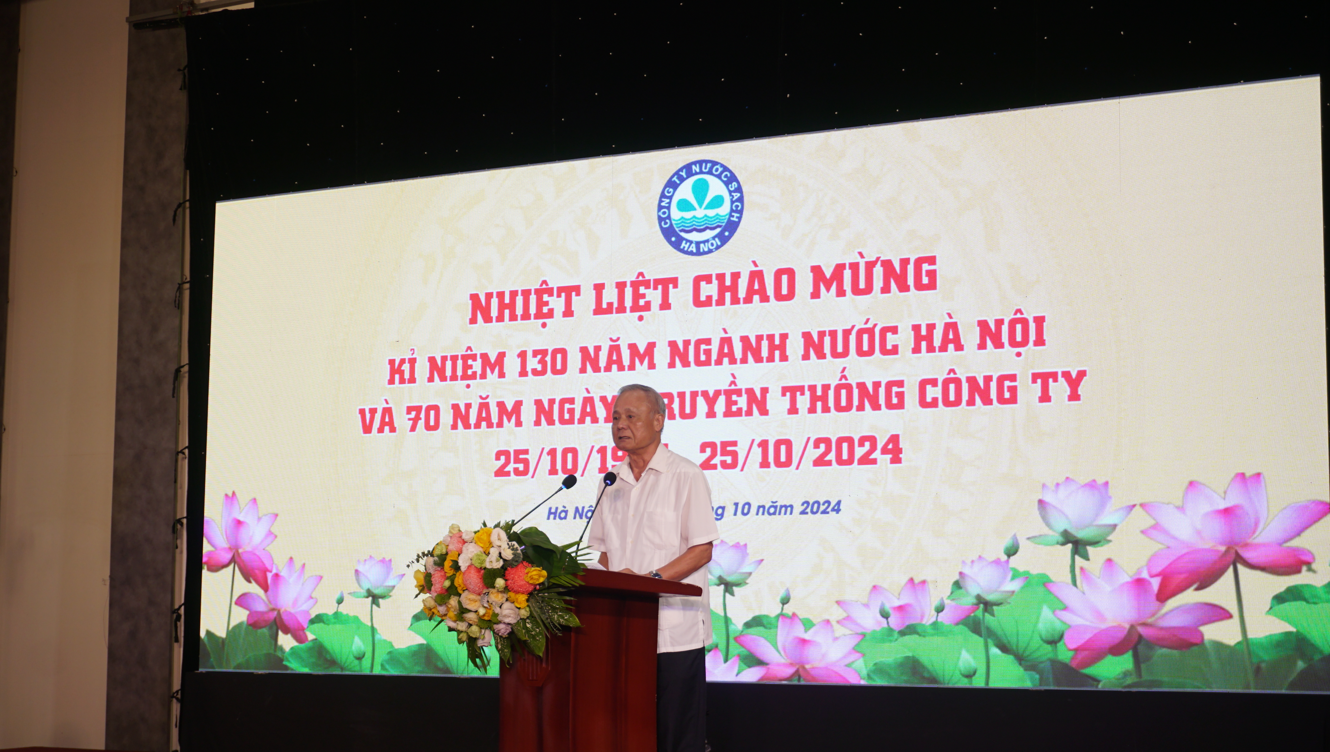 Thay mặt thế hệ các cán bộ lãnh đạo đã nghỉ hưu, ông Phạm Quốc Trường, Nguyễn Giám đốc Sở Giao thông công chính Hà Nội, Nguyên Giám đốc Công ty Kinh doanh Nước sạch Hà Nội chúc mừng sự phát triển vượt bậc của Công ty Nước sạch Hà Nội ngày hôm nay và mong muốn các thế hệ CBCNV của Công ty NSHN sẽ luôn giữ vững những truyền thống tốt đẹp của những người con ngành nước, phấn đấu xây dựng Công ty NSHN ngày càng lớn mạnh, góp phần vào công cuộc xây dựng Thủ đô văn minh, giàu mạnh.