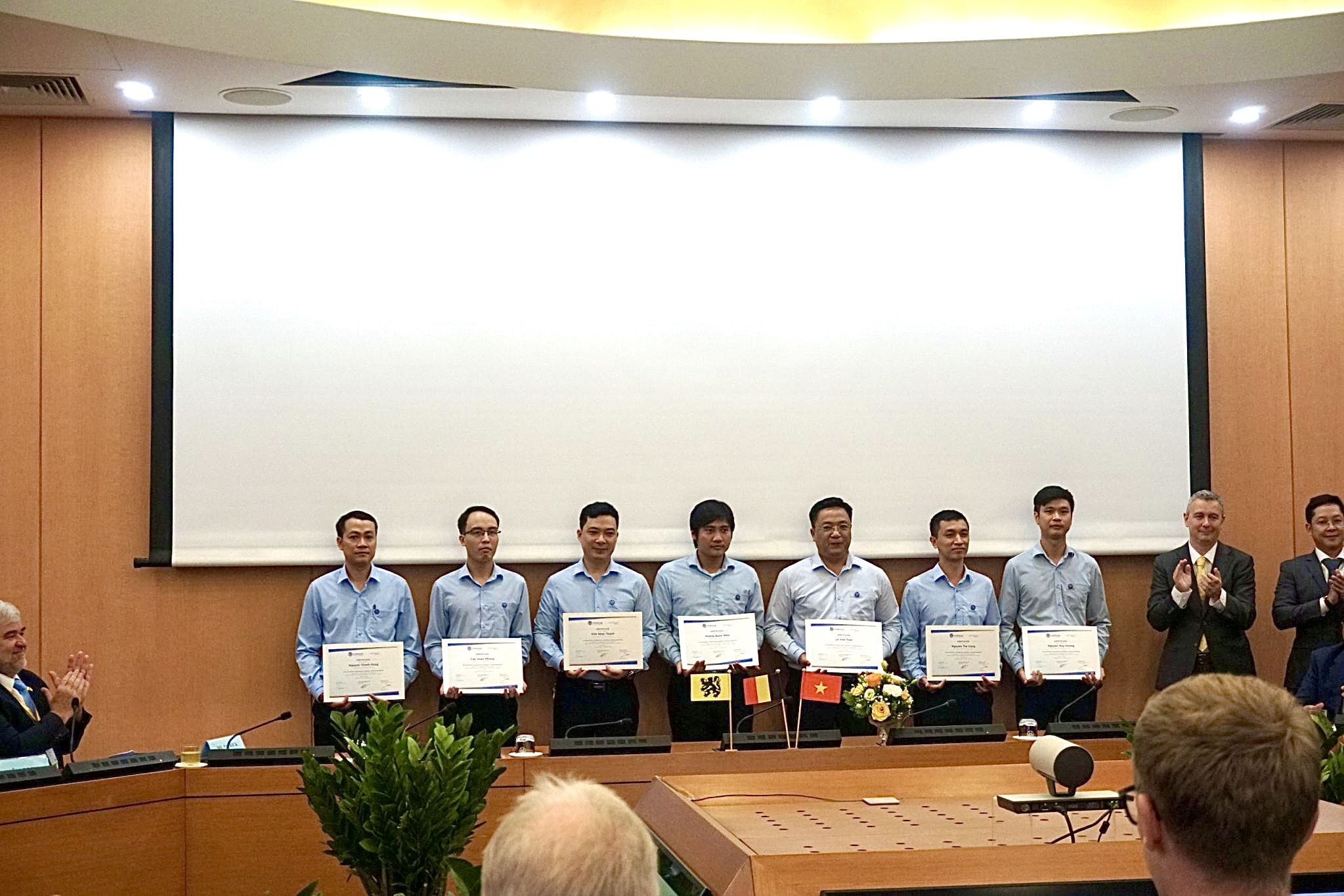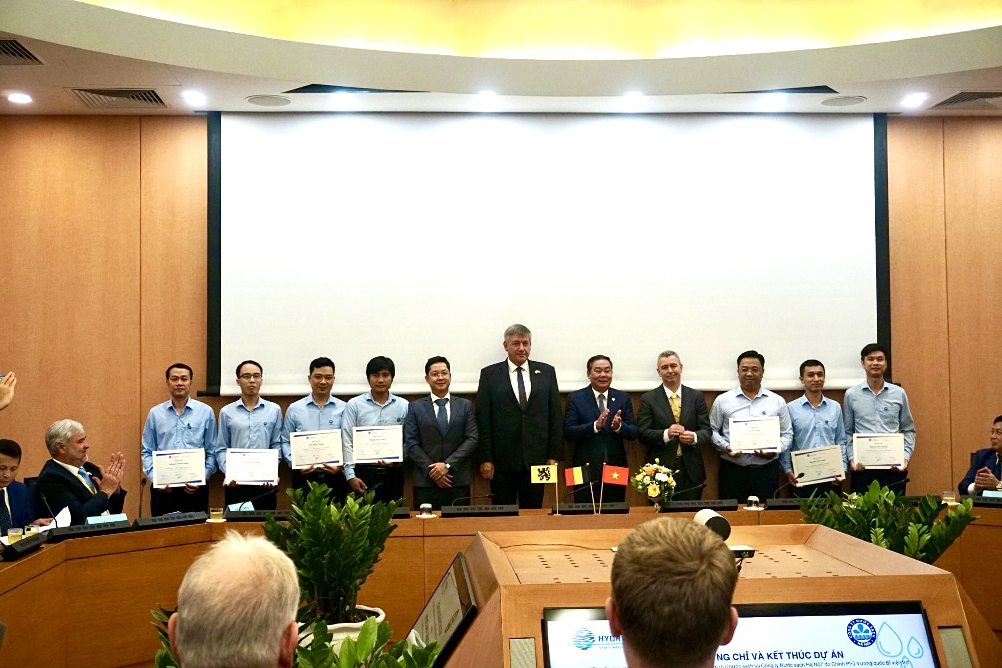 Tại buổi lễ, 7 học viên tiêu biểu của Công ty Nước sạch Hà Nội đã được trao chứng chỉ kết thúc dự án dưới sự chứng kiến của Phó chủ tịch Thường trực UBND Thành phố Hà Nội Lê Hồng Sơn tiếp và ngài Jan Jambon, Thủ hiến Chính phủ kiêm Bộ trưởng Bộ Ngoại giao, Văn hóa, Công nghệ thông tin và Quản lý cơ sở vật chất Vùng Flanders, Vương quốc Bỉ. Đây là thành công lớn trong việc hợp tác giữa 2 Công ty Nước sạch Hà Nội và Công ty HydroScan – Bỉ, góp phần tạo dấu ấn hợp tác về khoa học - công nghệ giữa 2 nước Việt Nam – Vương quốc Bỉ.